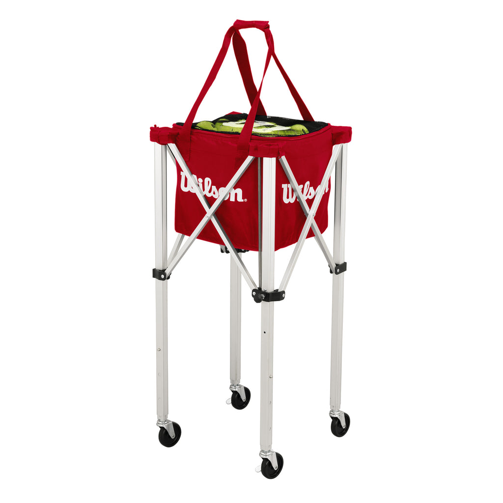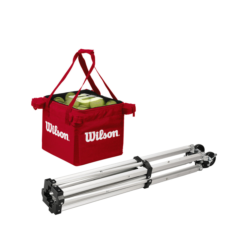 Comprised of a red storage bag and foldable cart, the Tennis Teaching Cart & Bag has enough space for up to 150 tennis balls. The bag fits securely inside the teaching cart, providing easy access for repetitions during practice. Bag features a zippered top to ensure safe, convenient travel and prevent balls from spilling out.