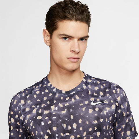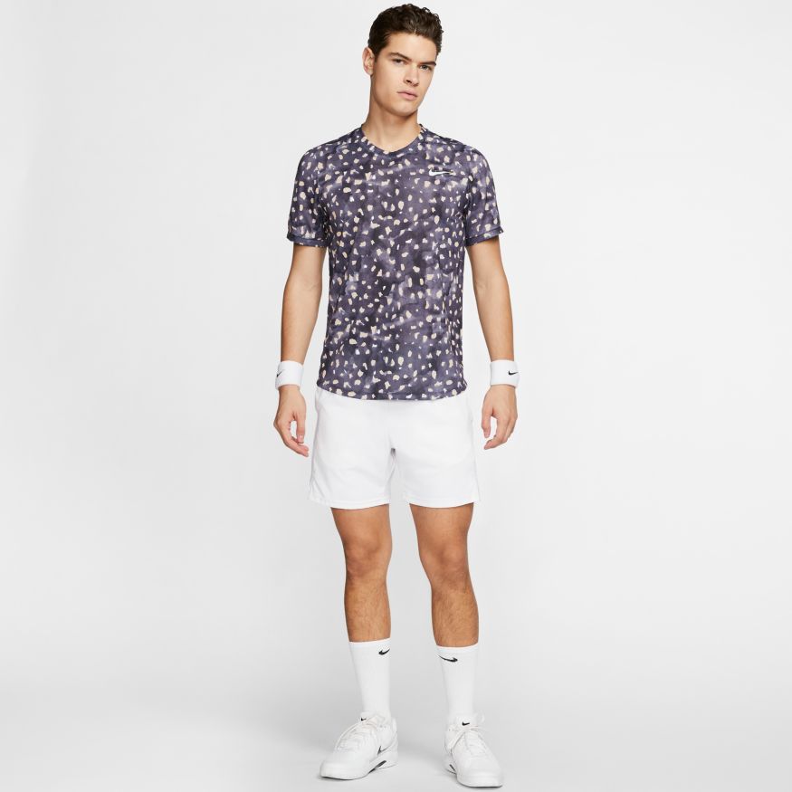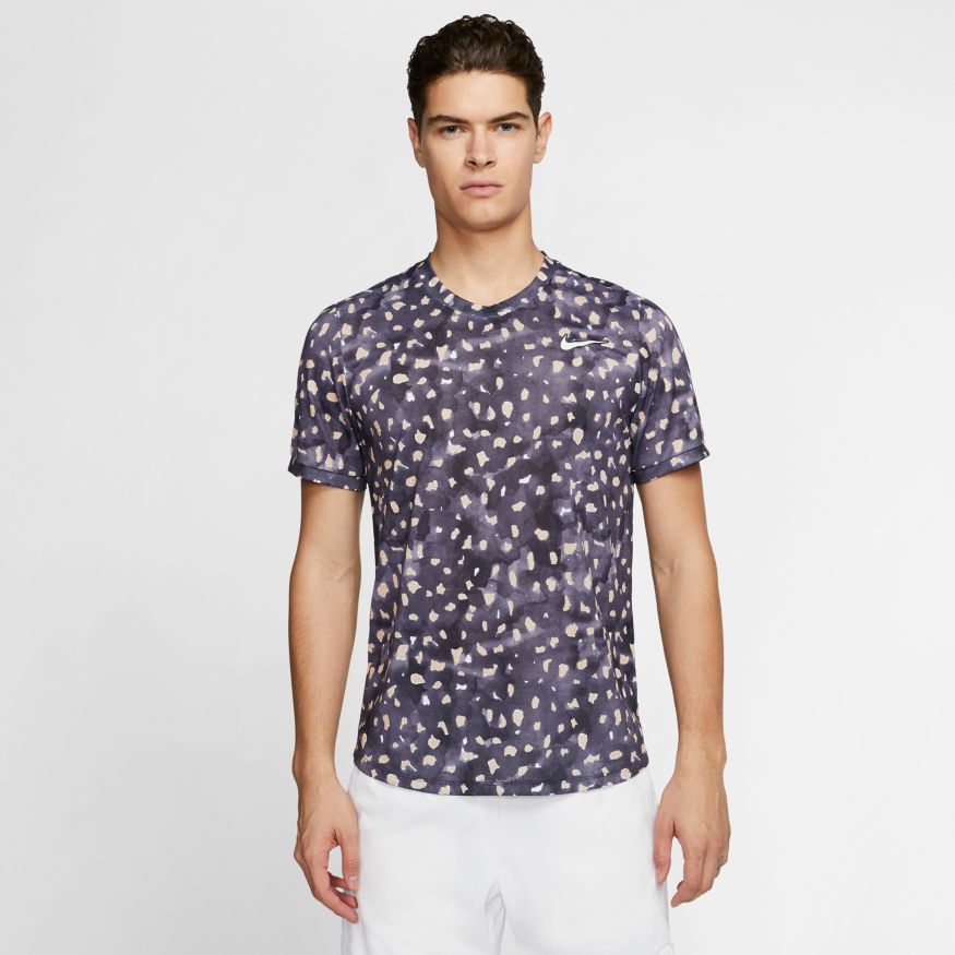 NikeCourt Challenger Men’s Short-Sleeve Tennis Top is a modern mosaic. The NikeCourt Challenger Top makes a statement on the court with an Australia-inspired print. Its stretchy, breathable fabric wicks sweat as you run, hit and serve. It has Soft knit fabric is breathable and stretchy. Dri-FIT technology helps you stay dry and comfortable. The shoulder seams are rolled back at an angle so you can swing freely during overhead hits. Its Mosaic-inspired print was designed in collaboration with Melbourne-based artist Cassie Byrnes.