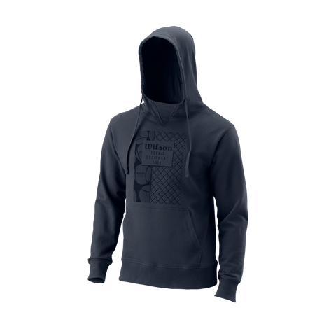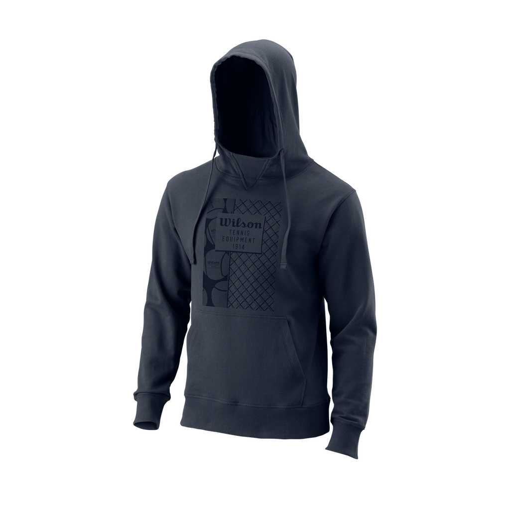 • Organic cotton brushed French terry knit pullover hoody with tonal heritage Wilson catalogue cover artwork on front chest Relaxed neck opening with rib knit, v-notch Kangaroo front pocket Pleated hood for an ergonomic fit with premium, flat drawcord Rib-knit detail at waist and sleeve cuffs Slimmer, athletic cut for complete comfort