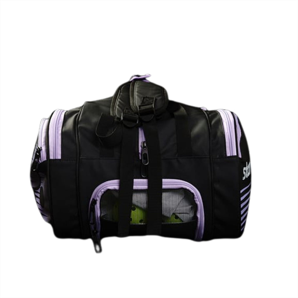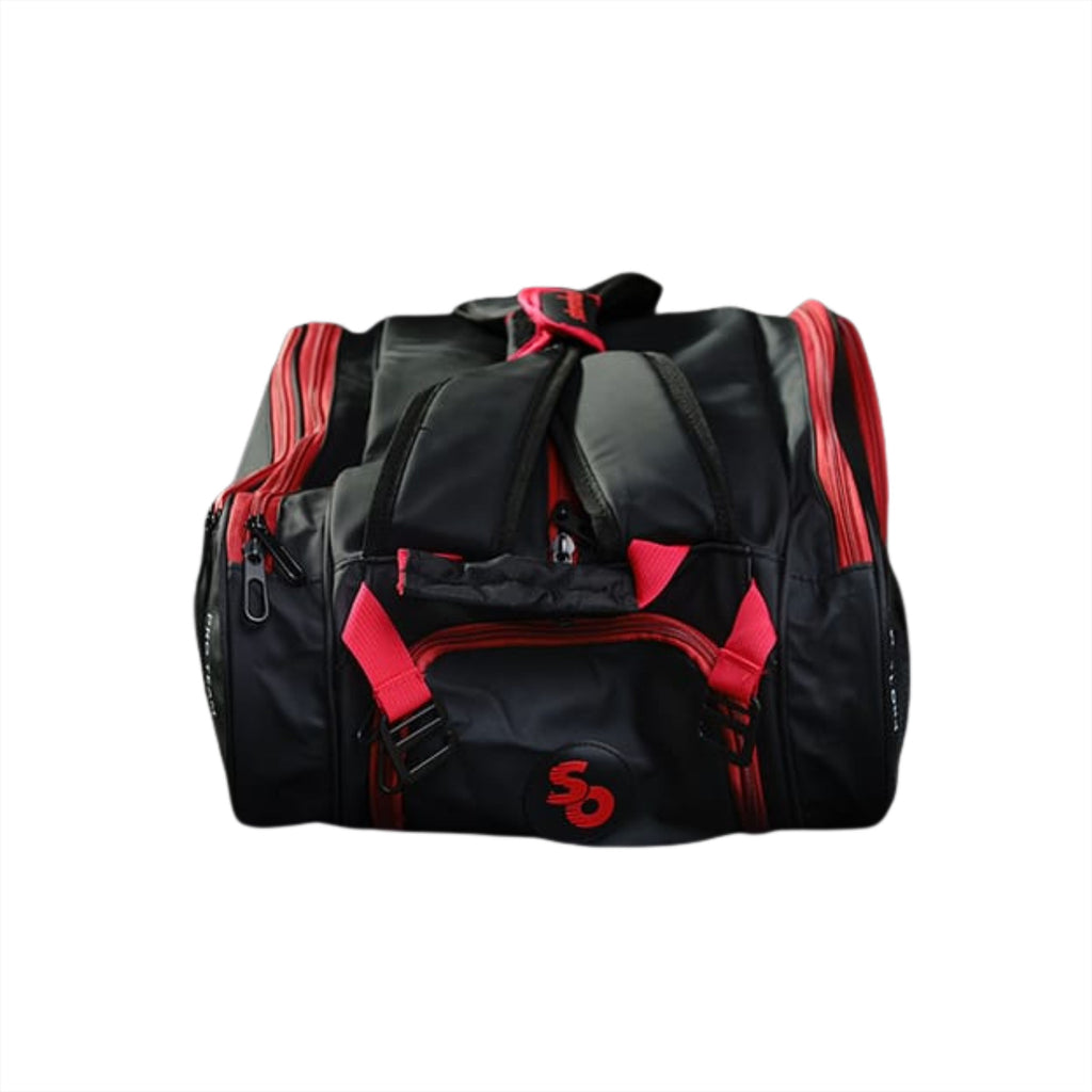 - Organizational Pockets: Features multiple storage compartments to keep all your gear organized and accessible, perfect for players who like to be prepared. Two compartments each fit up to three paddles, as well as a balls compartment, shoes compartment and a compartment for towel and clothes.