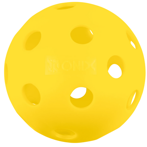 The ONIX Fuse Indoor Pickleball in yellow is ready for action right out of the box, offering consistent performance across indoor courts. Specifically designed for pickleball, it delivers the truest flight and bounce. Featuring durable seam welding to resist splitting and precision-drilled holes for optimal balance, this ball is perfect for indoor surfaces like concrete and gym floors.