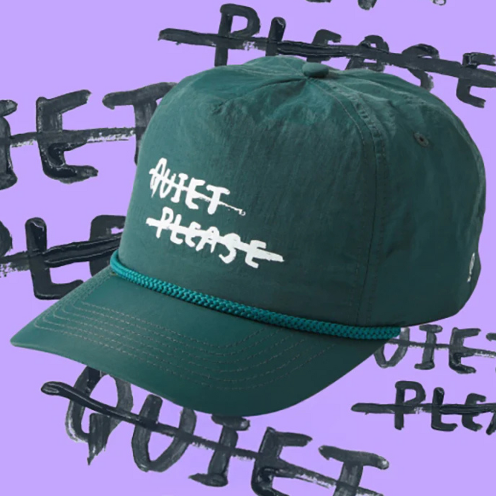 Keep it cool and playful with the Rallee “Quiet Please” Hat. Built from lightweight nylon, it’s breezy enough for summer days yet tough enough for everyday adventures. The bold “Quiet Please” print pops against the kelp green backdrop, making it a statement piece whether you’re on the court, on the move, or just out for some sun.