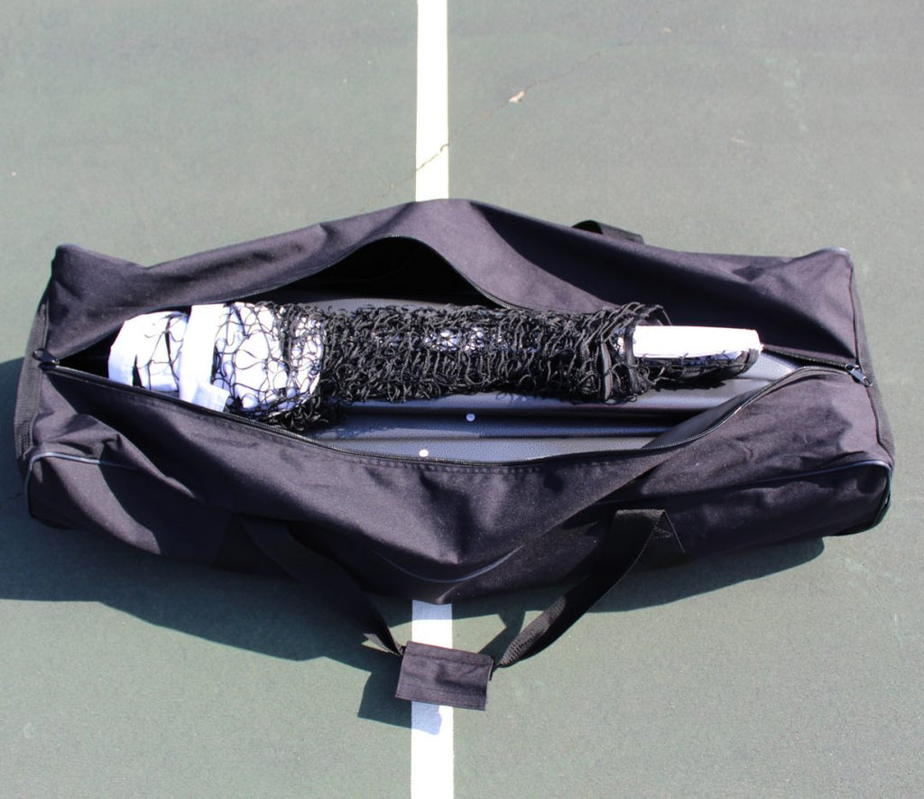 This premium portable system is the heavy-duty upgrade to the classic PickleNet, featuring a powder-coated steel frame with patented oval tubing for faster setup and perfect alignment. Locking 4” wheels and 1.5" x 3" oval tubing add stability and easy transport, while the elastic bottom band and centre-strap design ensure consistent tension and regulation height (22’ x 34”). The included deluxe wheeled bag, crafted from rugged 420D nylon, makes storage and travel simple. Built for performance, portability, and durability, this is the ultimate net system for players who demand more.