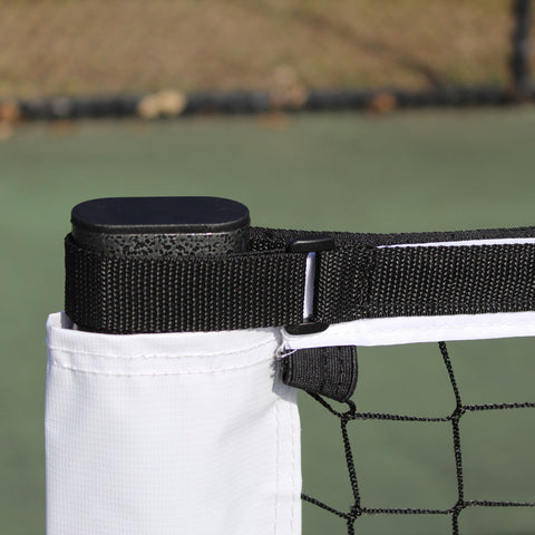 The PickleNet Deluxe system is made from powder-coated steel and comes in official Pickleball dimensions (22’ x 34”). Centre-strap design maintains consistent height along the net. Adjustment straps on net edges provide excellent net tension. Fast and easy to assemble. Made from heavy 420D nylon, our PickleNet Deluxe bag with wheels features a durable zipper, carry straps, and internal sections to make portable net storage easier than ever. Oval tubing for faster set-up and automatic alignment of the centre frame. The elastic bottom net band speeds up net set-up, helps maintain consistent net tension, and takes stress off of the net to increase durability.