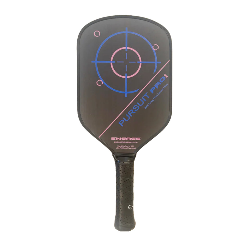 The Next Generation of T700 and Power finally come together in the NEW Engage Pursuit Pro1 Power Series.  The new Engage Pursuit Pro 1 Power series combines the next generation of Raw Toray T700 Carbon Fiber with incredible power. The new, innovative core of these paddles is a MachPro Polymer Core. This core has been optimized to deliver maximum power while maintaining an extended hold time at the point of contact with the ball which results in enhanced spin and control on every shot. The redesigned shape of the paddle is more aerodynamic  to increase swing speed, allowing for faster hand speed. This creates more power and spin while optimizing the sweet spot for maximum forgiveness. The Variable Release 2.0 Technology, exclusive to the Pursuit Pro1, amps up the excitement, delivering even more flex than the other paddles in the Pursuit line. As you start to swing faster, the paddle flexes even more, igniting your game with electrifying spin and power. Also to note, with the introduction of the Pursuit Pro1, both the 1/2 inch (Pro1) and 5/8 inch (Pro1 6.0) paddle thicknesses feature a consistent 4 1/4 inch grip circumference.