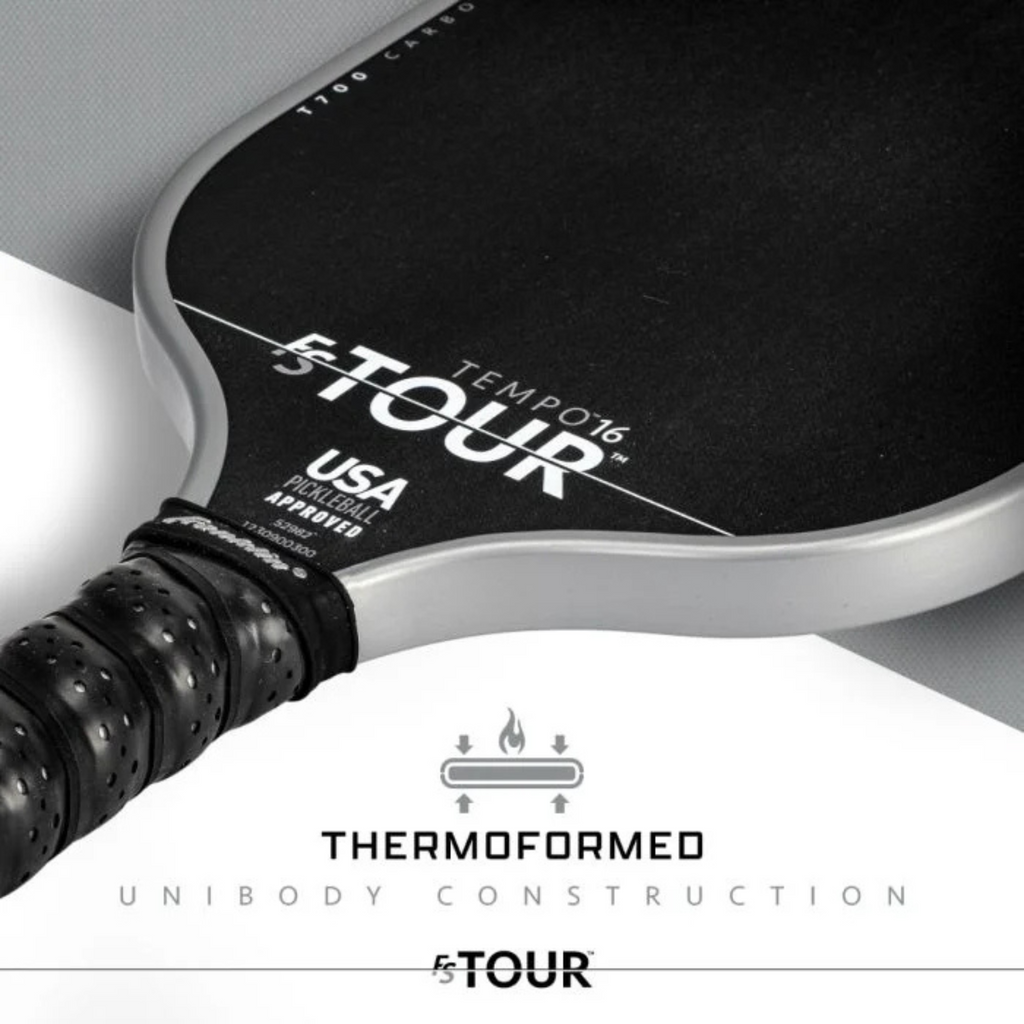 The Franklin FS Tour Tempo Pickleball Paddle in Gray is designed for players aiming to elevate their game. Featuring a premium T700 raw carbon fiber surface, this paddle delivers exceptional spin and shot-making ability. Its thermoformed unibody frame with foam-infused edges maximizes the sweet spot while reducing vibration, giving you unmatched power and control.