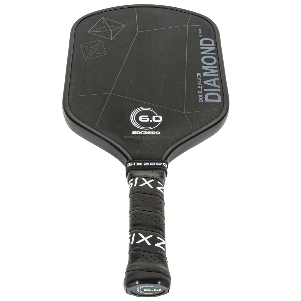 Six Zero Double Black Diamond Control 16mm 6.0 Logo Pickleball Paddle - Black With White