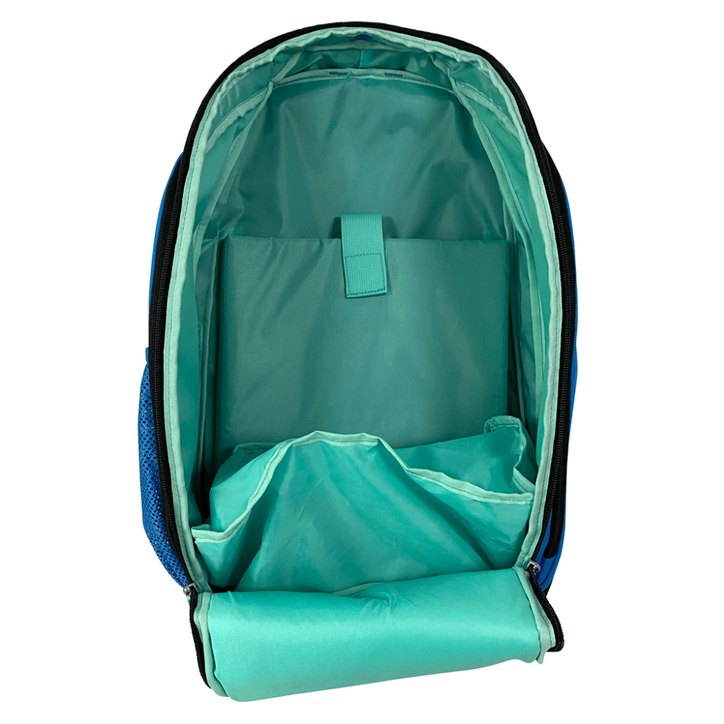 Introducing the JOOLA Vision II Backpack in vibrant blue, the ultimate companion for tennis enthusiasts and urban adventurers alike. This sleek and sporty backpack effortlessly combines functionality with style. Step seamlessly from the office to the courts with its padded laptop sleeve nestled within the spacious main compartment. Keep your gear organized and easily accessible with the multiple compartments, including a ventilated shoe partition to keep your shoes fresh.