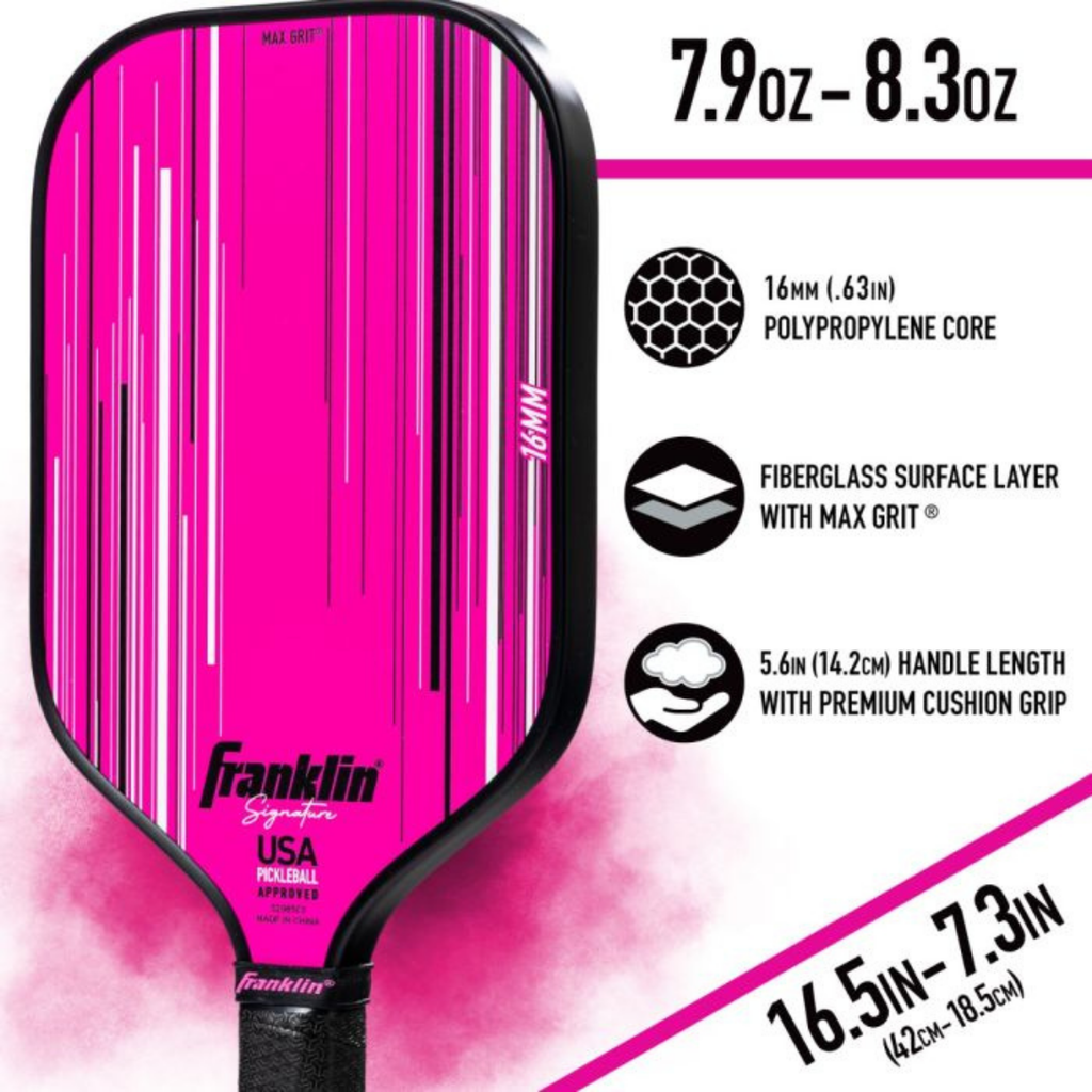 Designed for competitive play, this paddle is USA Pickleball approved and built to win. Elevate your pickleball game with unmatched power and accuracy from Franklin’s Signature Series.