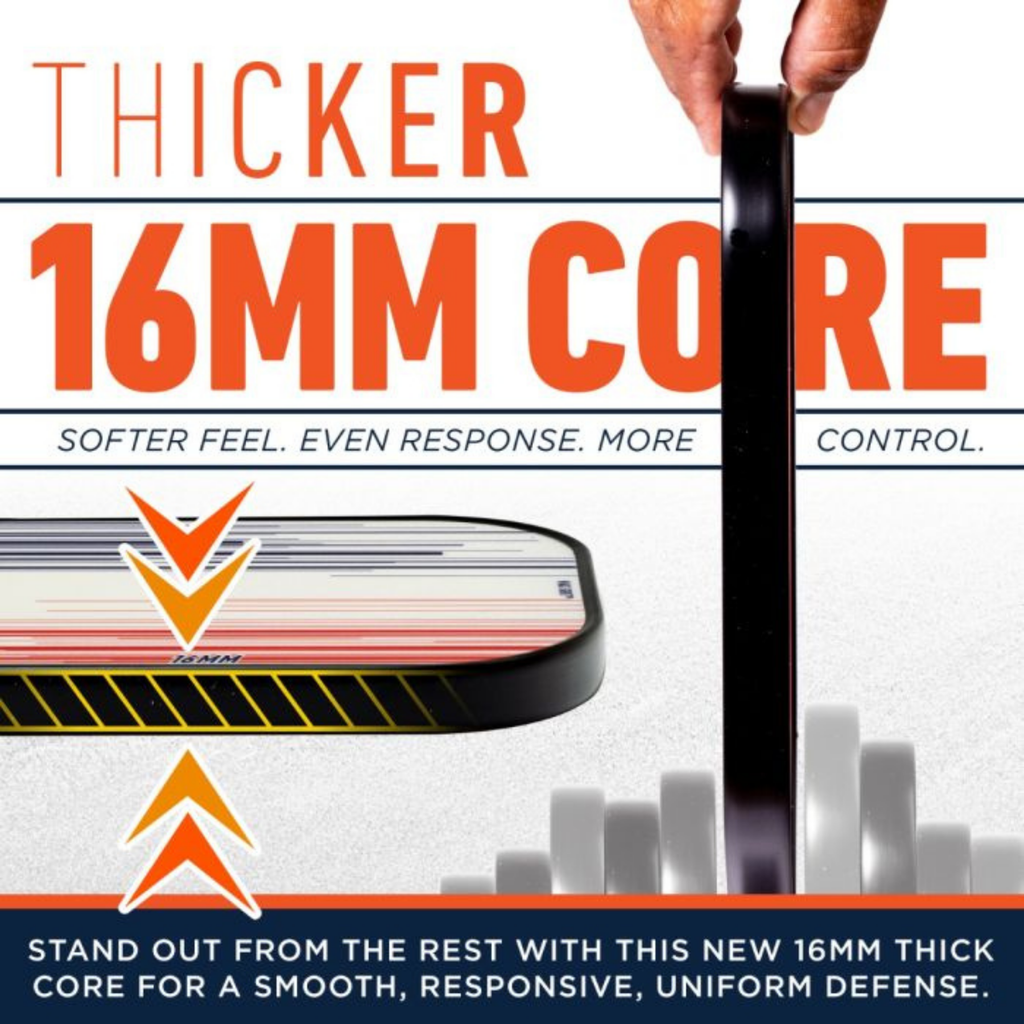 - Durable Core: 16mm polypropylene core with fibreglass surface for a larger sweet spot