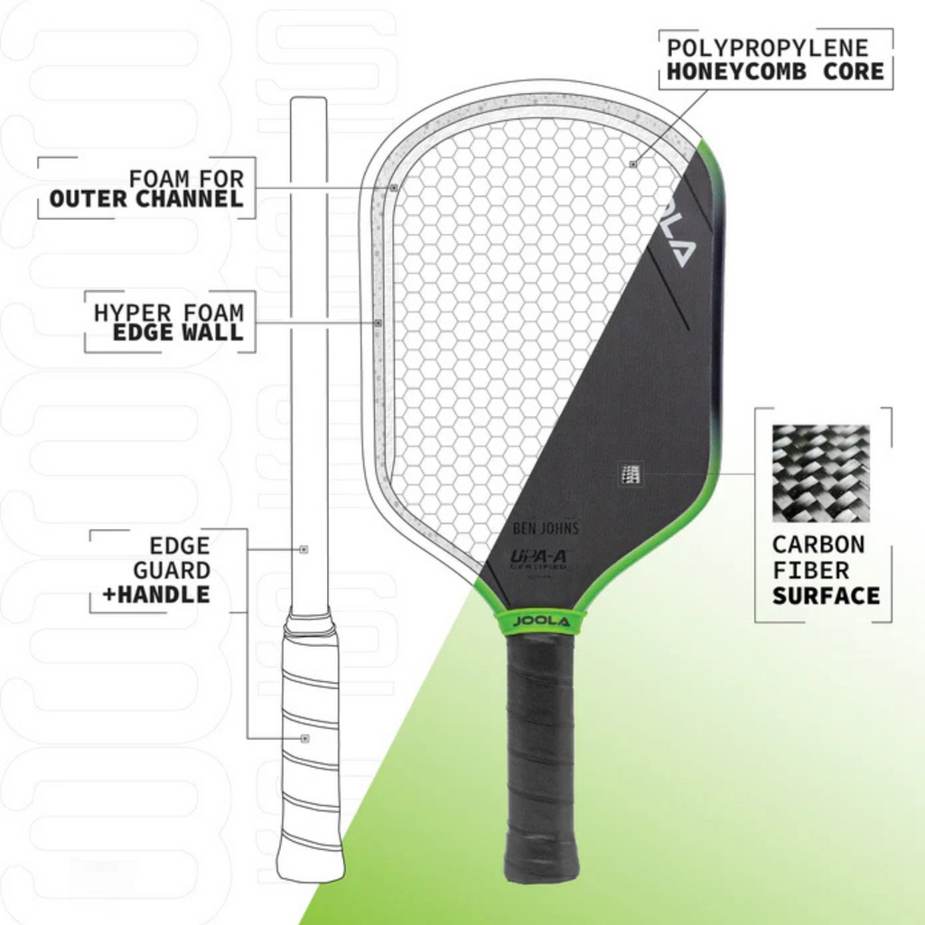 Step up your game with the JOOLA Ben Johns Hyperion 3S 16mm Pickleball Paddle — upgraded for greater stability, precision, and power. Featuring a solid 3S performance boost, this paddle’s Propulsion Core technology delivers effortless control and pop, while the Charged Carbon Surface keeps your shots crisp and powerful. The trusted Aero Curve shape enhances maneuverability, giving players across all skill levels the edge they need. Fully UPA-A certified and built for long-lasting performance, the Hyperion 3S is your ticket to unlocking elite-level play.