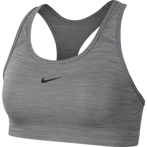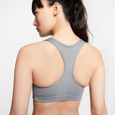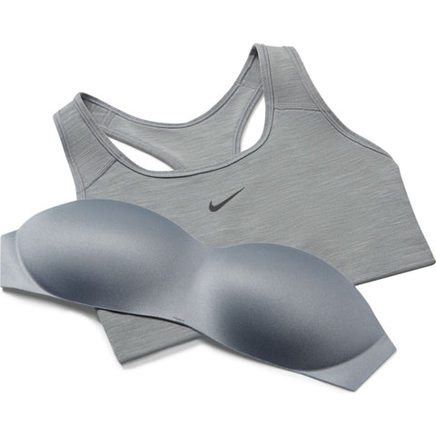 When it comes to your workout, support is essential. That's where the Nike Dri-FIT Swoosh Sports Bra comes in. This bra features a removable 1-piece pad that is designed to keep a consistent shape, even after washing. The top-loading pocket is perfect for storing all your essentials, while classic coverage provides medium-impact support for a range of activities. Made with at least 50% recycled polyester fabric, this bra is not only good for you, but also for the planet. Stay dry and comfortable with the Dri-FIT technology that wicks sweat away from your skin.