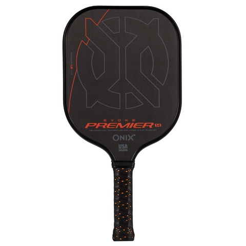 The Onix Evoke Premier Pro Raw Carbon Fiber 14 mm Paddle is built for players who crave precision, spin, and consistency without giving up power. Its raw carbon fiber surface delivers natural texture for unmatched spin control, while the 14 mm polypropylene honeycomb core strikes the perfect balance between touch and pop. Designed with Power Frame ThermoFused construction, this paddle offers durability and stability in every rally. With a comfortable perforated grip and USAPA approval, it’s ready for competitive play at the highest level.