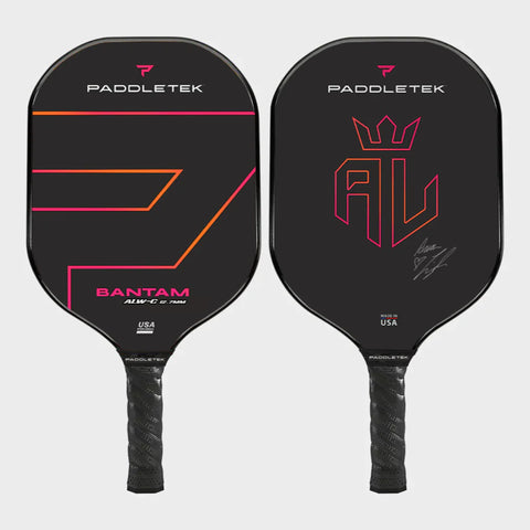 The Paddletek Bantam ALW-C was designed in conjunction with World #1, Anna Leigh Waters, to provide a combination of power, spin and flexibility. PT-700 unidirectional RAW carbon fiber is combined with Paddletek's legendary 12.7mm Bantam core to give serious players max power and spin control. This combination of power, spin and light/medium weight makes the ALW-C (12.7mm) a versatile paddle for performance minded players. Weight specifications will be within 1/10th of an ounce.  TECHNICAL SPECS