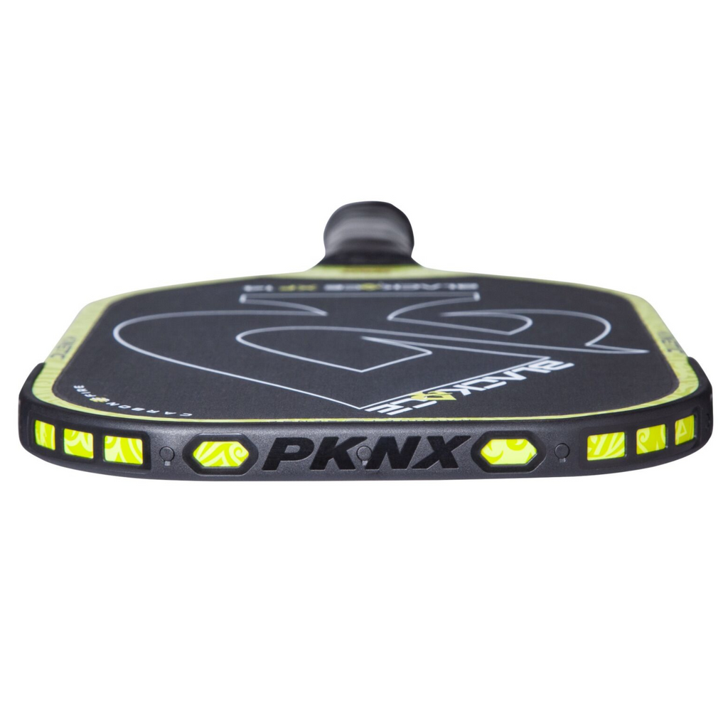 The ProKennex Black Ace XF 14 is built for players who want explosive power, extended reach, and precise spin control. With its elongated design, textured carbon face, and patented vibration-damping technology, this paddle delivers aggressive performance while staying arm-friendly. Perfect for players looking to cover more court and hit with confidence.