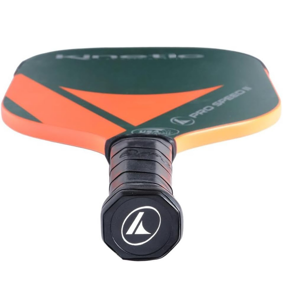 Stay on top of every shot with the lightning-fast maneuverability of the Pro Kennex Pro Speed II Paddle. An eye-catching cosmetic, top technologies, and a replaceable Air-O-Guard bumper system make this paddle stand out from the crowd. It features a wind-resistant edgeless construction and thin core technology to ensure your ability to react quickly under pressure, while also providing the speed you need for power on the offensive. Thanks to the Kinetic shock-absorbing system, you'll also enjoy optimal touch and comfort from around the court. USAPA approved, this paddle is ready to support your high-performance play. ProKennex Pro Speed II is designed for unmatched paddle speed.