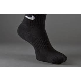 Add some style to your game and stock up on your basic sports socks with these Nike Performance Quarter Sock. They feature a reinforced toe and heel for durability, arch support, moisture management, and Swoosh on the cuff. The stability fit of these socks makes them perfect as you move through intervals and the rest of your active day. These have reinforced stitching and arch support for a snug fit that lasts. This will keep your feet cool and dry all day long. Bring bold, on-brand impact to your aesthetic with these socks and keep comfortable at the same time.