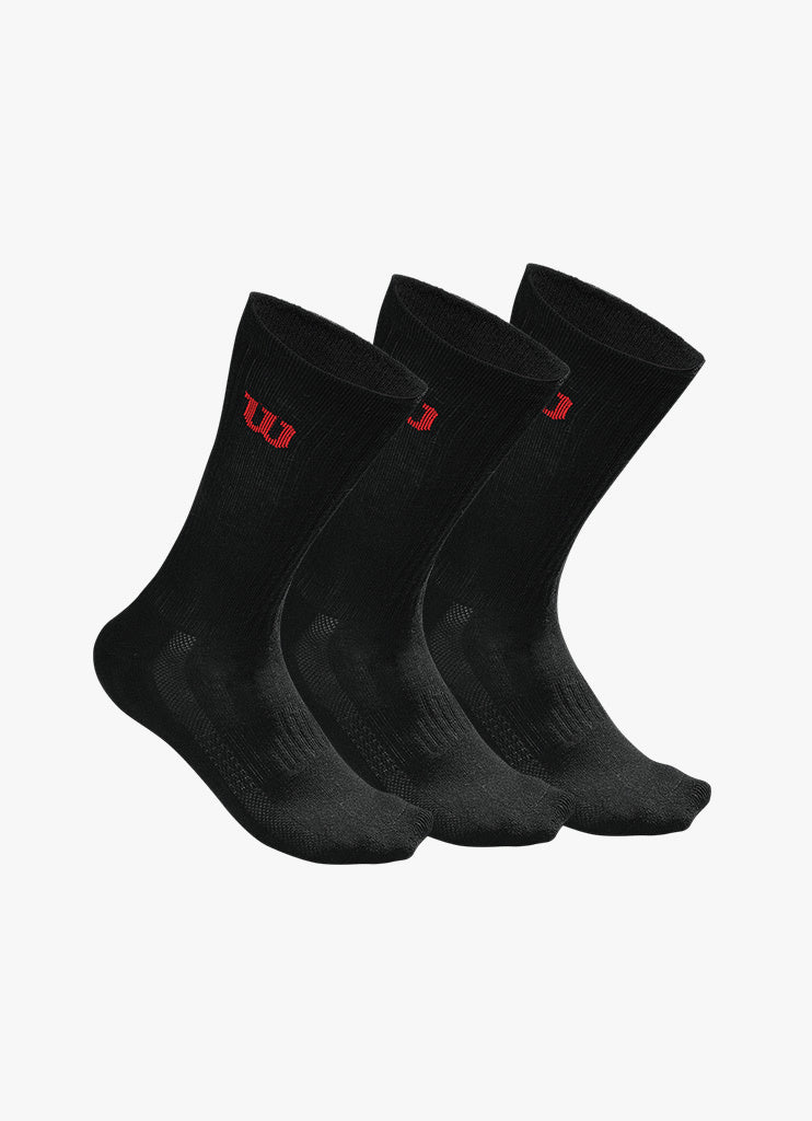 Styled in black with a red Wilson logo, these socks are machine washable for easy care.