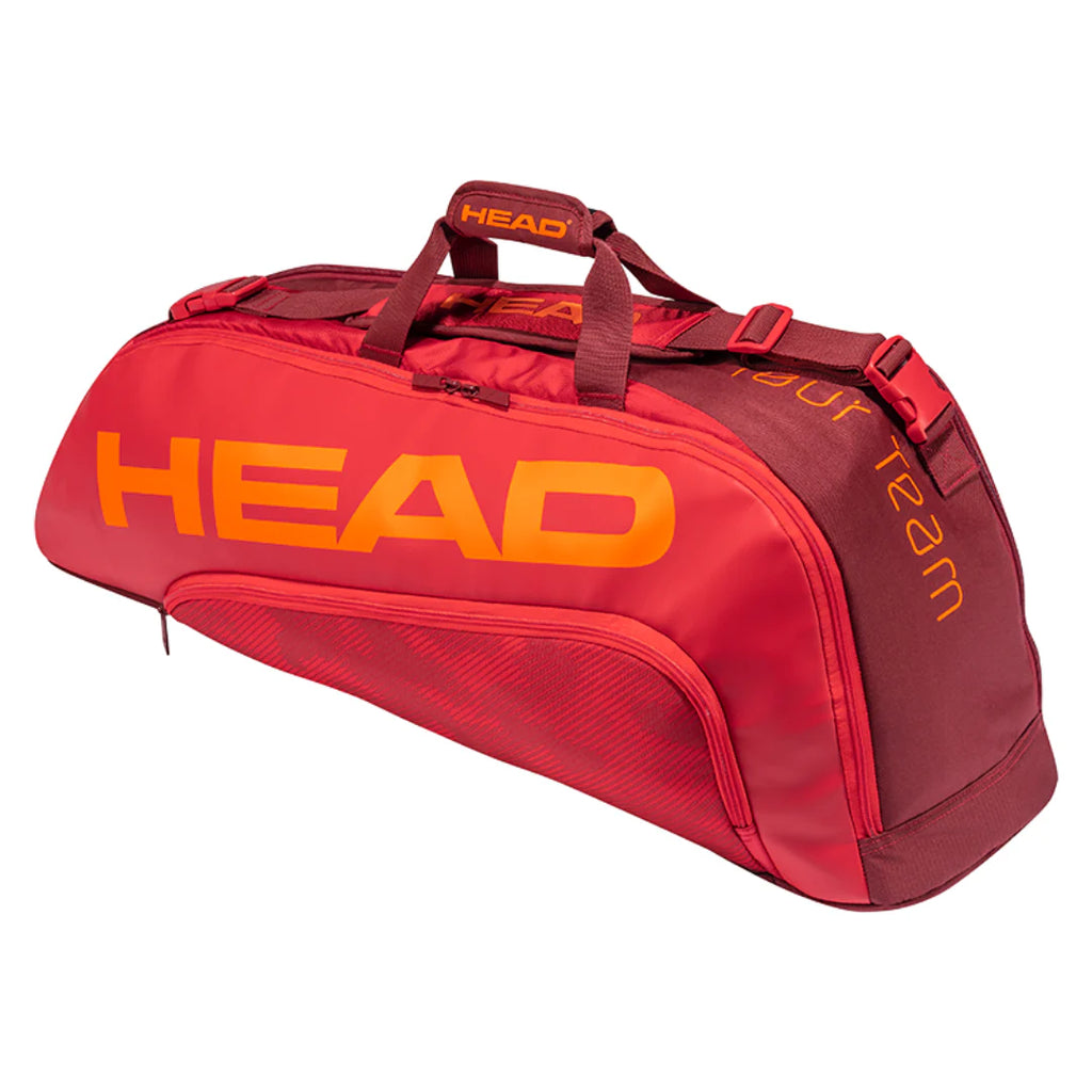 This Head Tour Team 6 Racquet Combi - Red/Red can fit up to six rackets into two compartments while being sure that climate control technology. This bag features the two main compartments will hold up to six rackets or other gear and has a small, mesh accessory pocket within. Its diagonal adjustable shoulder strap allows you to be flexible when on the road while the inside mesh pocket and outside pocket allows quick access to anything you needed. Have a nice trip companion from the Head Tour Team 6 Racquet Combi. This bag is ideal for any type of players looking for a tweener bag with space and comfort.