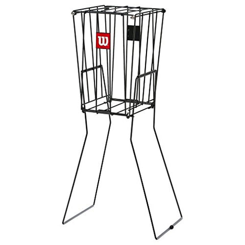 This Wilson 75 Ball Pickup, a tennis ball basket durable steel constructed holds 75 balls a no-spill lid and handles which convert to lock in place legs for easy use. The lightweight yet sturdy construction makes picking up balls a snap. Handles fold down to create legs for easy use during drills. This is the most popular ball basket for the avid player. Also a great court accessory for coaches and players who need to move from site to site with a lot of tennis balls.