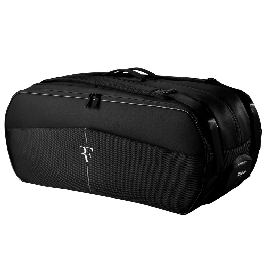 Elevate your gear with the Wilson RF Tournament Tennis Racquet Bag, designed with the elegance and precision inspired by the Swiss Alps and Roger Federer’s collection. This premium pinstripe bag features the iconic RF logo and custom RF zipper pulls. With ample space to hold up to 15 racquets, it includes two side pockets and a dedicated shoe compartment.