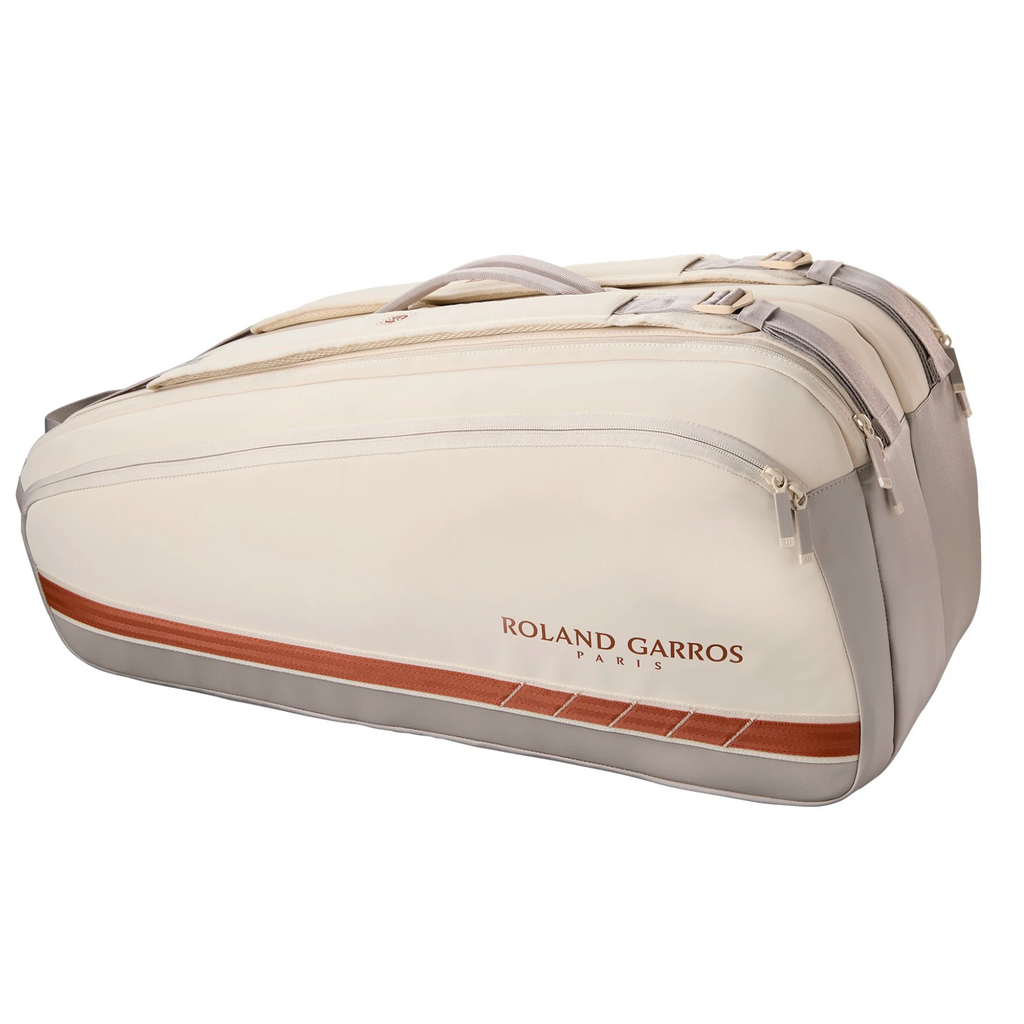 Carry the elegance of Roland-Garros with the Wilson RG 2025 Super Tour 9 Racquet Bag. Designed for serious players, this premium bag holds up to nine racquets and features a Thermoguard-lined compartment to shield gear from extreme temperatures. Multiple exterior pockets offer convenient storage for essentials, while padded, adjustable straps provide a comfortable backpack-style carry. Finished in classic cream and clay hues, this bag embodies the prestige of the legendary tournament.