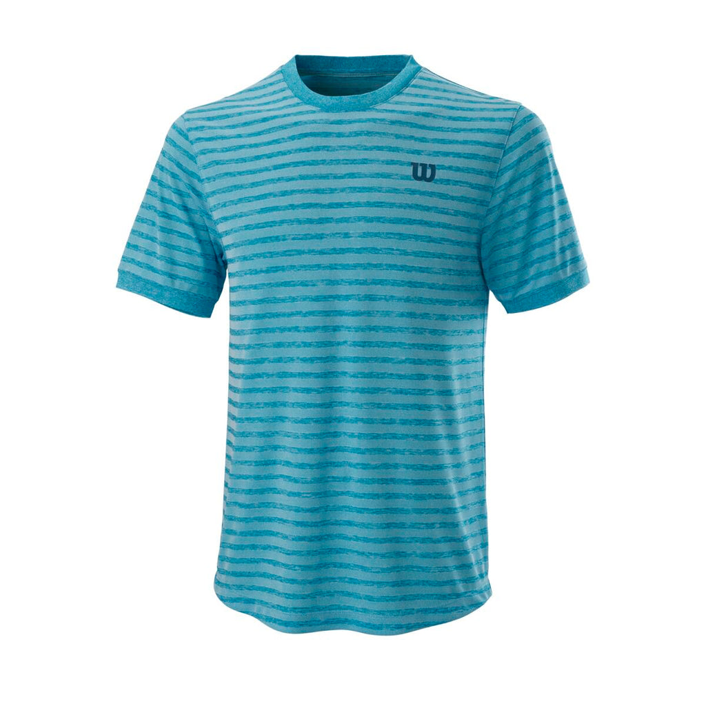 Sport a clean and classic look on the court with the Stripe Crew, a performance polyester knit fabric designed with a subtle, heathered horizontal stripe pattern across the body. Moisture-wicking technology in the material battles back against perspiration to preserve comfort on every swing.