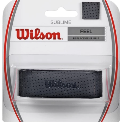This Wilson Sublime Replacement Grip black offers a nice balance; not too tacky, not too dry. Features a desirable balance of tack and comfort, the Sublime Grip is a top performer for many tennis players. Micro perforations on the surface work to increase moisture absorption for sweaty hands, maintaining an excellent grip to help you stay in control from start to finish.